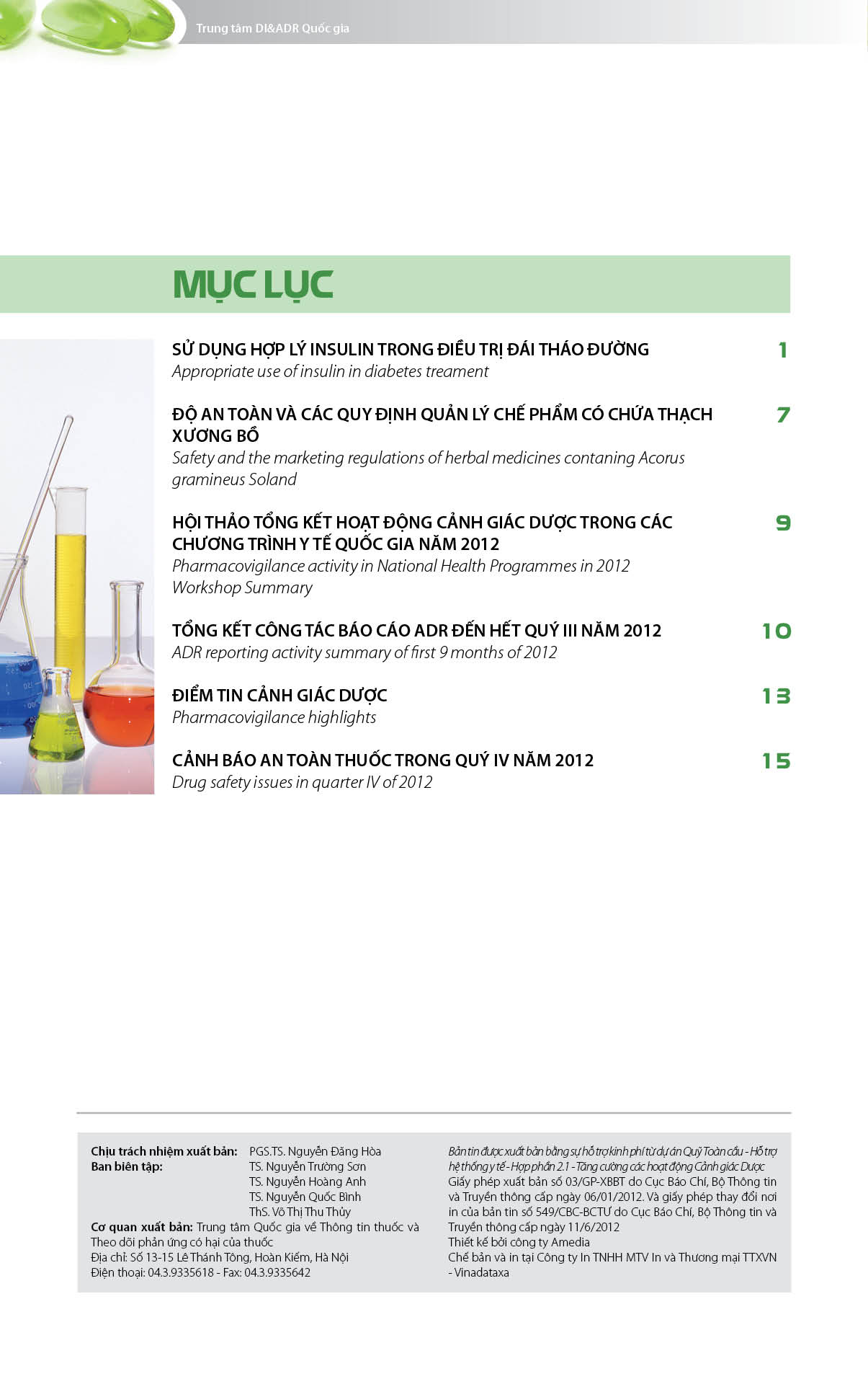 Để tăng cường hiệu quả hoạt động của hệ thống Thông tin thuốc và Cảnh giác dược, Trung tâm Quốc gia về Thông tin thuốc và Theo dõi phản ứng có hại của thuốc thực hiện việc xuất bản Bản tin Cảnh giác dược (theo giấy phép xuất bản số 03-XBBT ngày 6/1/2012 của Bộ Thông tin – Truyền thông) với mong muốn xây dựng một diễn đàn chia sẻ kinh nghiệm, thông tin trong thực hành Cảnh giác dược và các hoạt động đảm bảo an toàn trong sử dụng thuốc. Bản tin sẽ được xuất bản định kì 3 tháng 1 số với những nội dung chính sau: - Tổng quan về cảnh giác dược và đảm bảo an toàn trong sử dụng thuốc - Chia sẻ kinh nghiệm thực tiễn tại Việt Nam. - Chuyên mục Thông tin thuốc, những điểm thận trọng cần lưu ý khi sử dụng các thuốc mới được cấp số đăng kí. - Điểm tin Cảnh giác dược trong nước và trên thế giới. - Điểm tin hoạt động Cảnh giác dược tại Việt Nam.